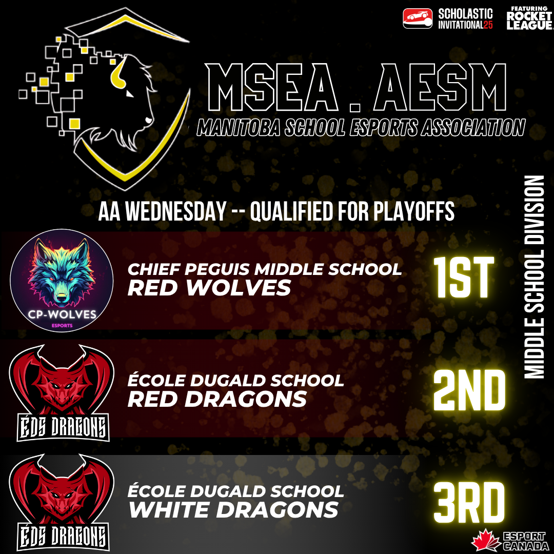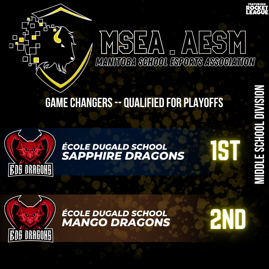 What an exciting day for ÉDS Dragons Esports! Out of the 14 playoff spots awarded based on regular-season standings, École Dugald School has officially clinched six. Congratulations to the teams moving on: