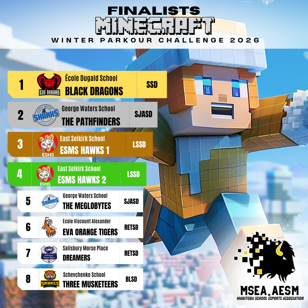 It was a landmark weekend for the École Dugald School Dragons esports program, highlighted by success across multiple titles and events. Before competition even began at the Manitoba School Esports Association (MSEA) Brawlhalla 2026 Provincial Finals, ÉDS had already made history—being crowned the Manitoba Provincial Minecraft Winter Parkour Build Challenge Champions.